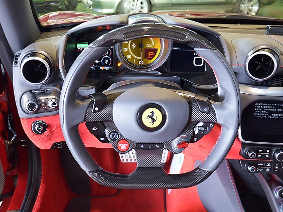 | 主装備 | AC、PS、PW、ABS、クルーズコントロール、障害物センサー、エアバッグ(運転席・助手席・サイド)、フロントカメラ、バックカメラ、横滑り防止装置、 盗難防止装置、過給器設定モデル、HDDナビ、ミュージックプレーヤー接続可、ETC、キーレス、スマートキー、本革シート、電動シート、シートヒーター、純正アルミホイール、アップルカープレイ、アルカンターラシートインナートリム、アルカンターラドアパネル、アルカンターラリアウォールトリム、インテリアレザーカラー・シートバックレスト、 カラード・ブレーキ・キャリパー(ジアッロ・モデナ)、カーボンファイバー製リア・エアダクト、クロームエッジ・フロントグリル、Nuovo Rosso 592(Red)、 カラード・レザー仕上げ・センタートンネル(CHARCOAL)、デイトナスタイルシート、カラード・レザー仕上げ・ダッシュボード(CHARCOAL)、ロア・ダッシュボードのアルカンターラ仕上げ、 フロントシート・ヘッドレスト跳馬刺繍(ROSSO)、カラーカーペットの口ゴ刺繍、LED付力ーボンファイバー製ステアリングホイール、インテリアレザーカラー・リアアッパー、 スクーデリア・フェラーリフェンダー・エンブレム、マグネライド・デュアルモード・ショックアブソーバー・システム、リアパーキングカメラ、パッセンジャーディスプレイ、 20インチ・クローム仕上げ・鍛造スポーツホイール、カラー・レブ・カウンター(イエロー)、スペシャル・カラード・ステッチ(FILOSPECIALE ROSSO)、 レザー仕上げ・デイトナ・ストライブ(ROSSO FERRARI)、カラード・レザー仕上げ・ステアリング・ホイール(CHARCOAL)、Aピラーのカラード・レザー仕上げ、 ハイエモーション/ローエミッション(標準装備)、LHD、防眩ドアミラー(標準装備)、フル電動シート(シートメモリー、シートヒート等込み)、スキー・パッセージ、ボディーコーティング、ETCセットアップ、ドラレコ・レーダー探知機取り付け済 |